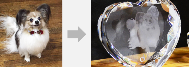 クリスタルメモリアルグッズに入れたいペットの情報(写真・亡年月日・メッセージ)をメールもしくは郵送にてご提出ください。